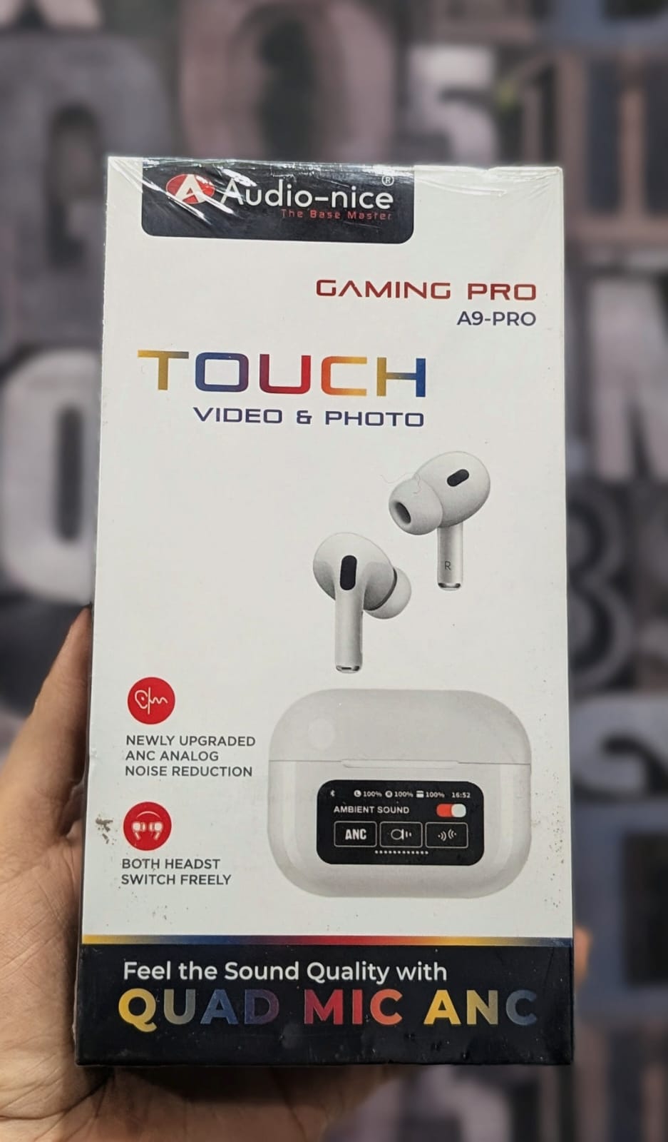 Audio Nice A9 Pro Airpods Wireless Bluetooth Earbuds with ANC, Touch LED Screen, Super Bass, Noise Cancelling, for Android & iOS